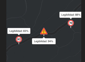 Captura automática de señales de tráfico: límites de velocidad, advertencias, direcciones, etc. Información clave para inventarios y validación de mapas de navegación obtenidas diariamente.