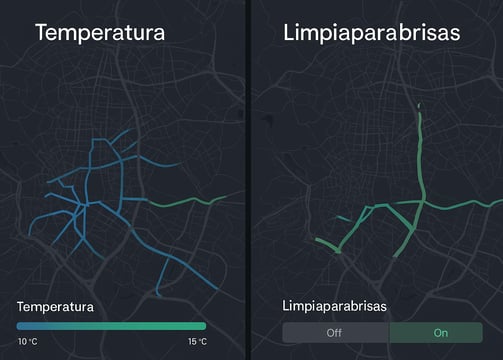 La temperatura del aire, la humedad y la velocidad del limpiaparabrisas existente en cada lugar donde circulan los vehículos es registrada y actualizada en tiempo real